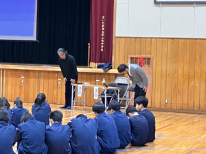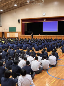 寒い体育館の中、時間いっぱいお話をさせていただきました。